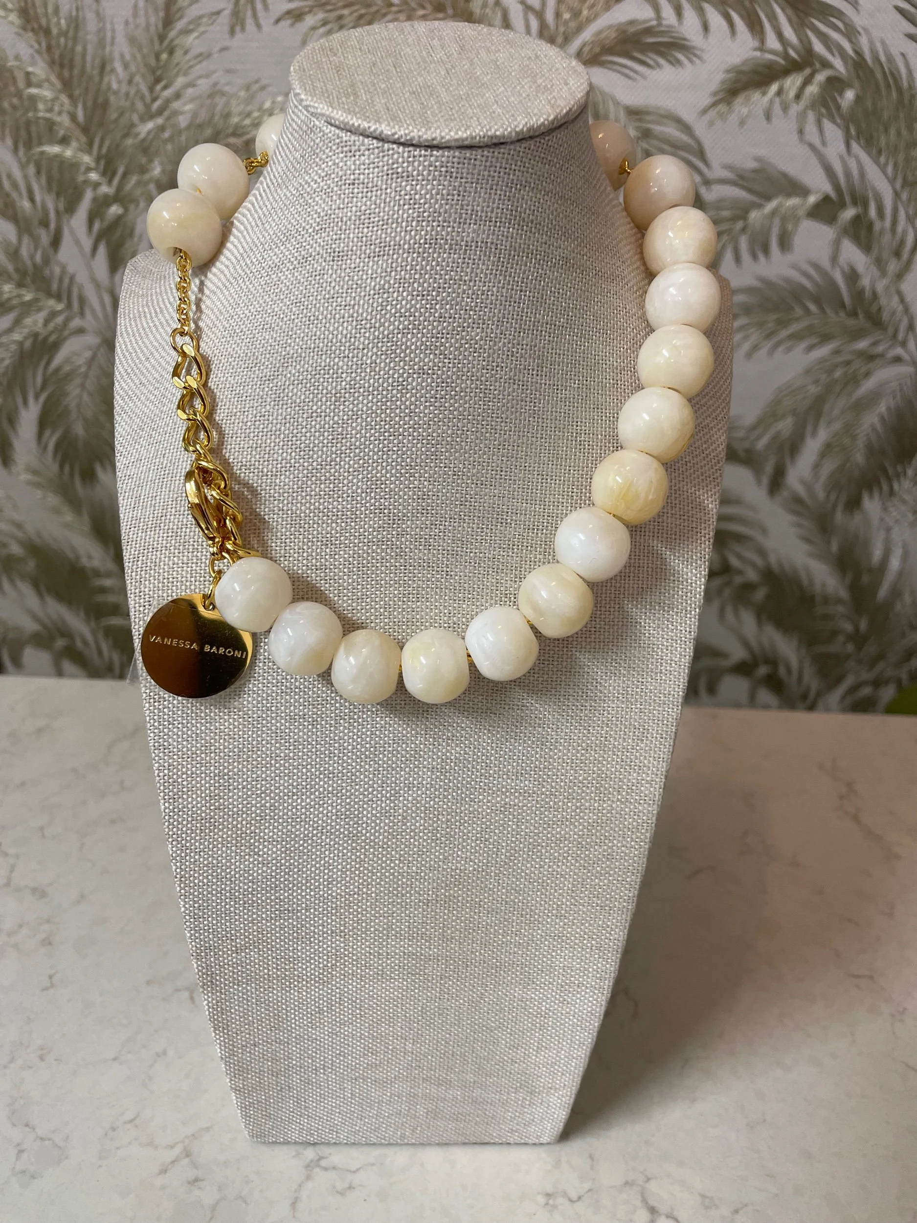Small bead Necklace in White marble by Vanessa Baroni