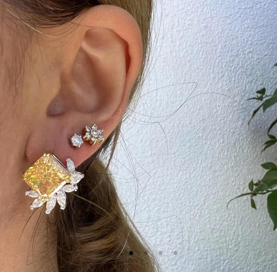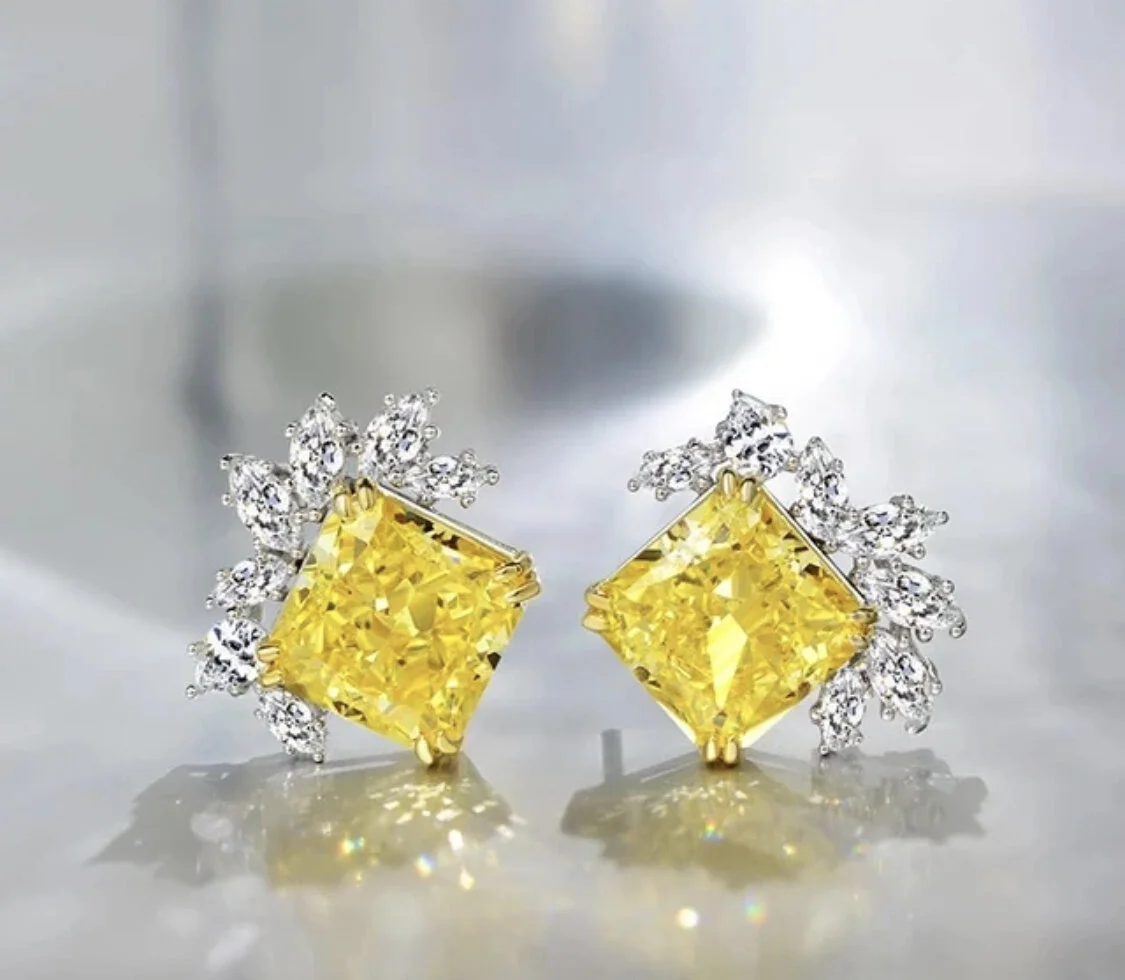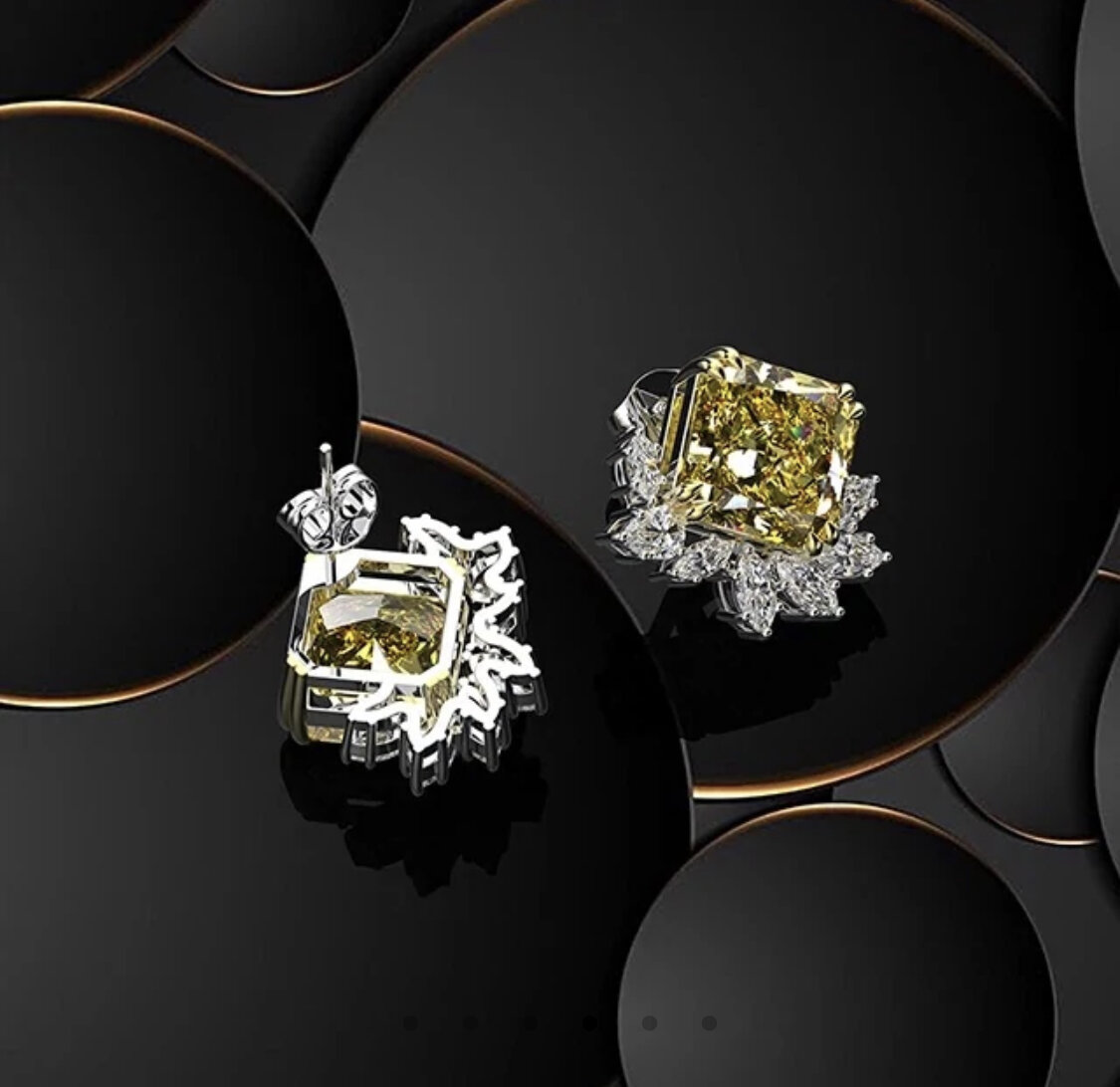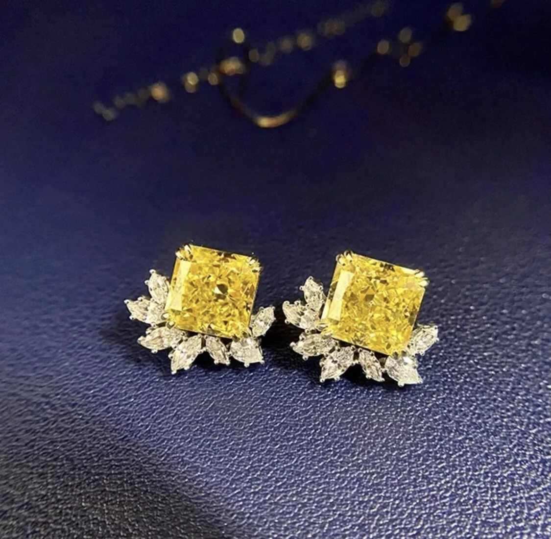 Like a burst of sunshine, these stunning canary simulated yellow diamond earrings are showstoppers! Surrounded with Marquise cut simulated diamonds they will take you from day to night easily!