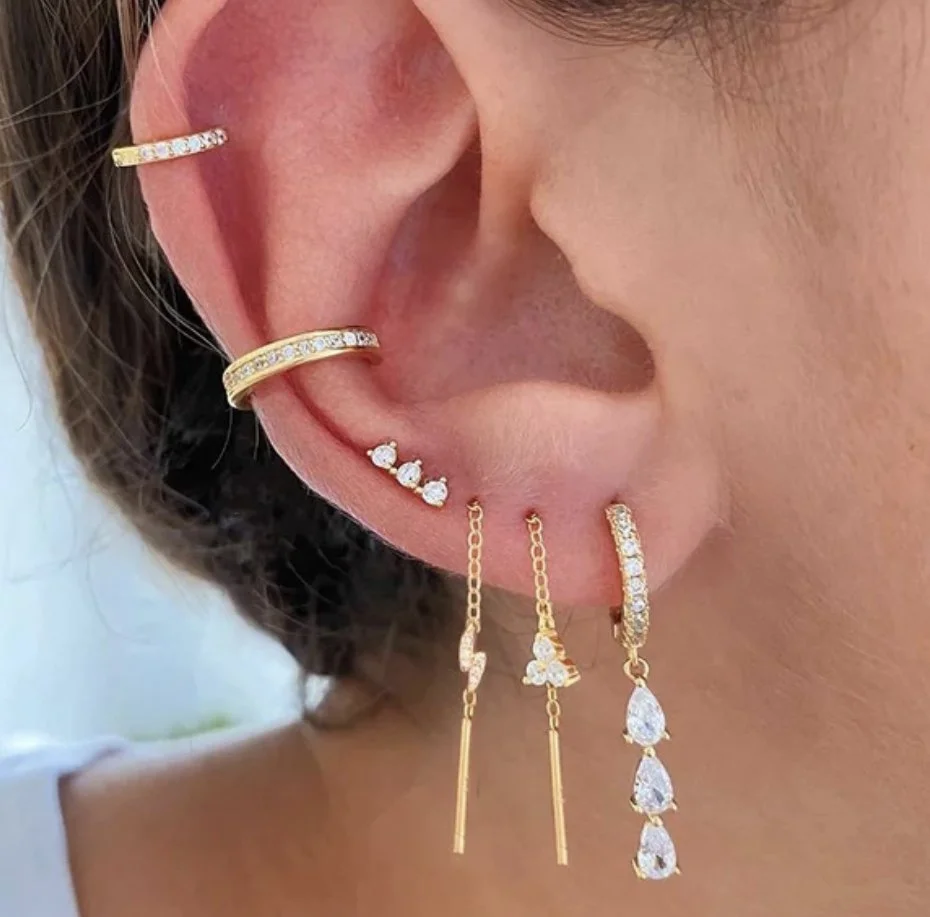 Trendy & delicate tear drop huggie earrings, made from gold plated 925 silver and cz diamonds